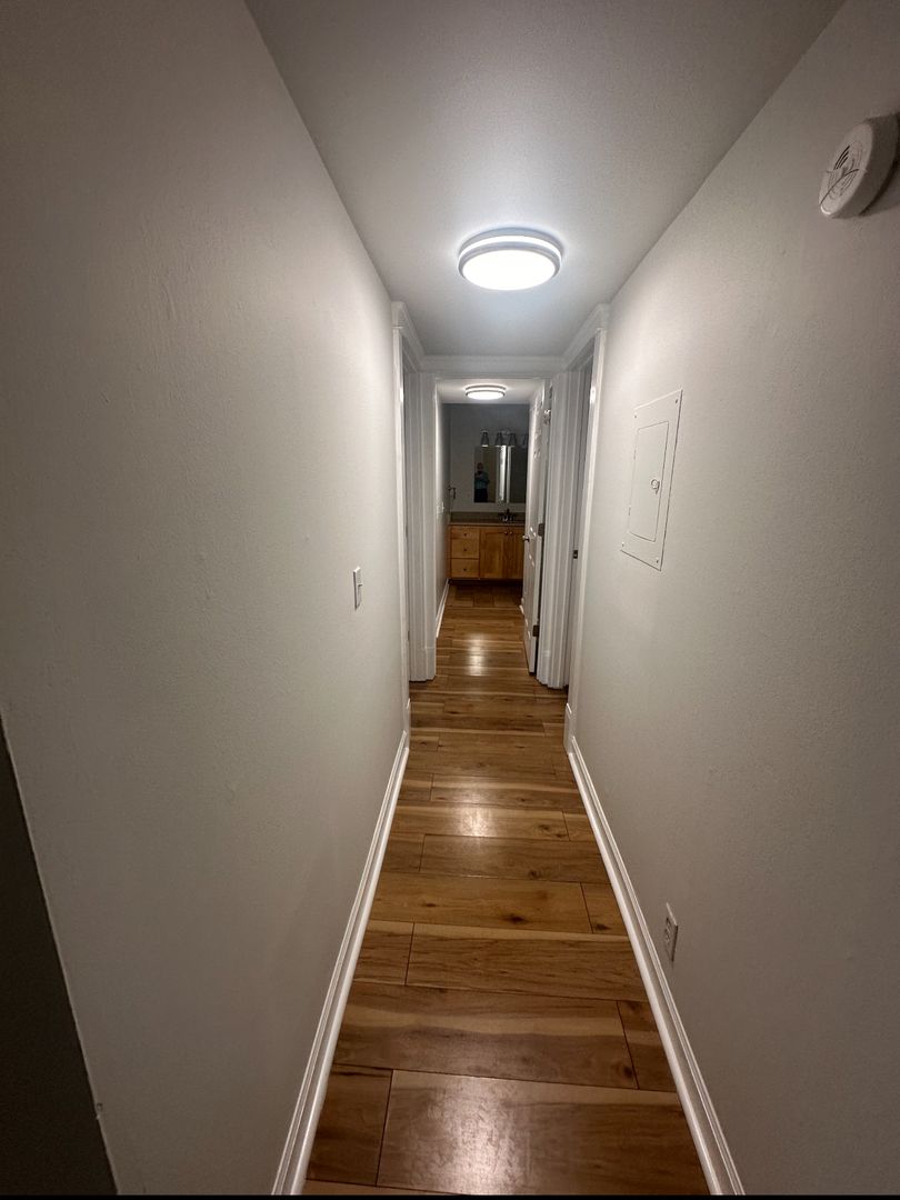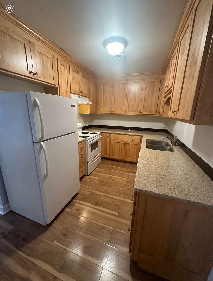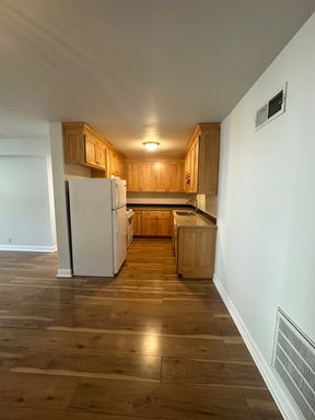 2br 2bath, 1100sf, hardwoods, large living/dining area, dishwasher, central HVAC, ceramic tile bath.
